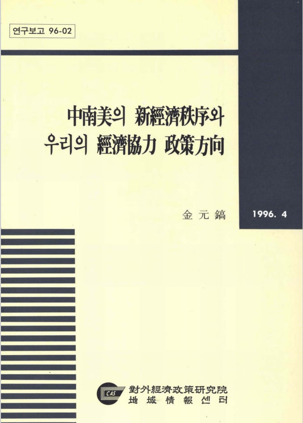 중남미의 신경제질서와 우리의 경제협력 정책방향 (The New Economic Order in Latin America and Policy Directions for Korean-Latin American Economic Relations), Policy Research Series, KIEP, March 1996. News, p.8.