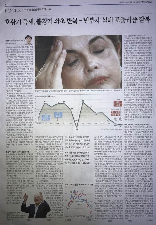 [Column] “위기의 브라질, 체질 개선 나서야” (Brazil in crisis due to weak fundamentals), 서울신문. 2016/3/18.